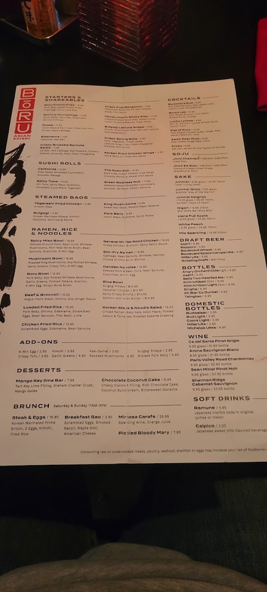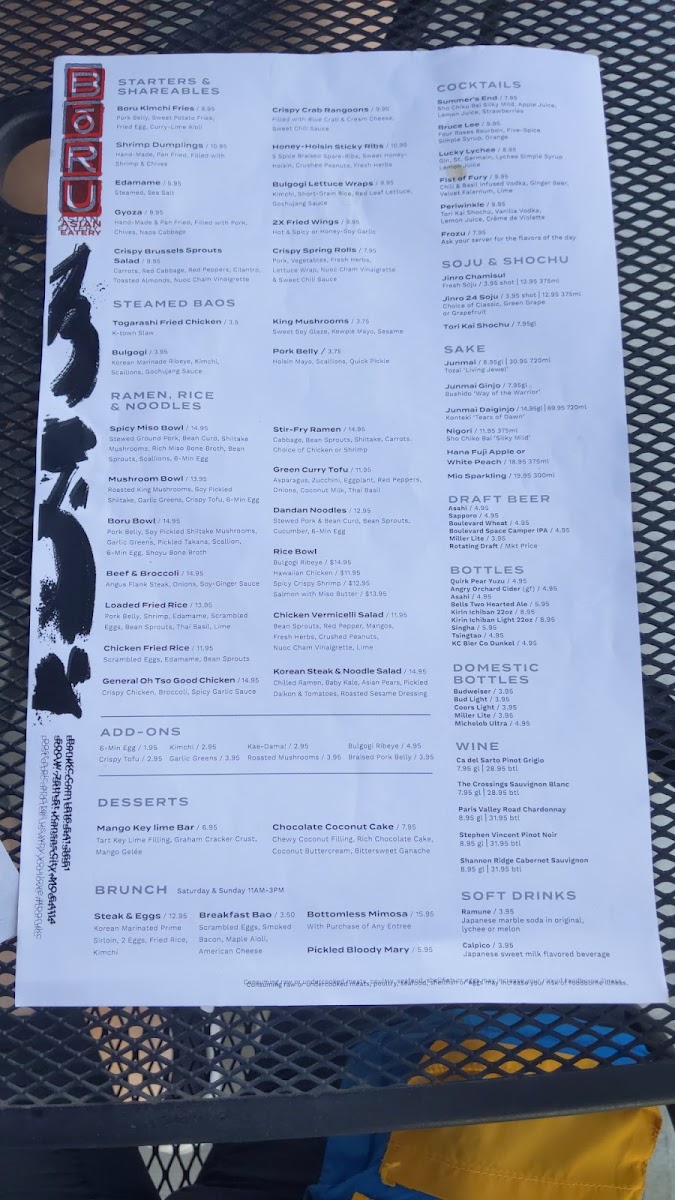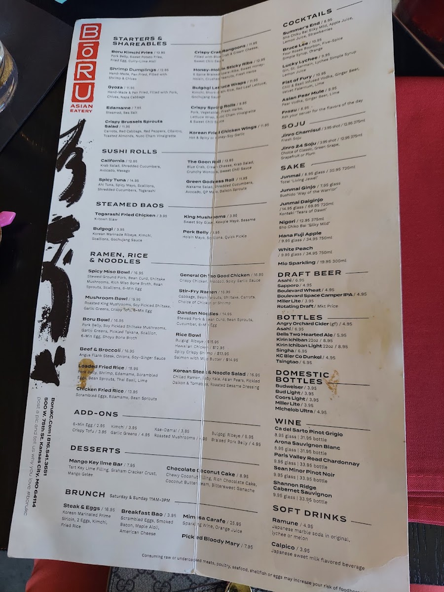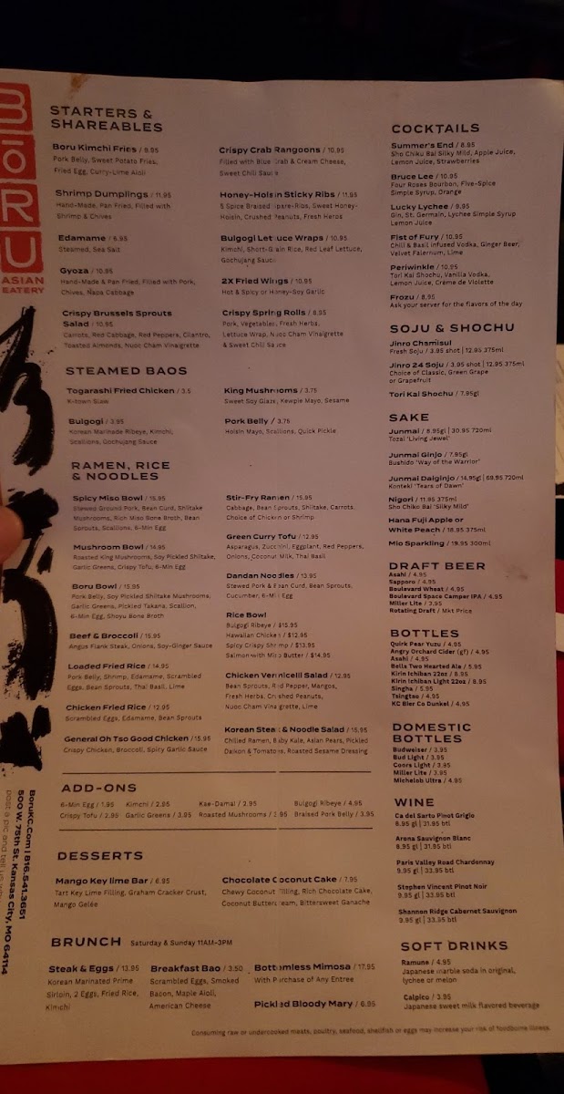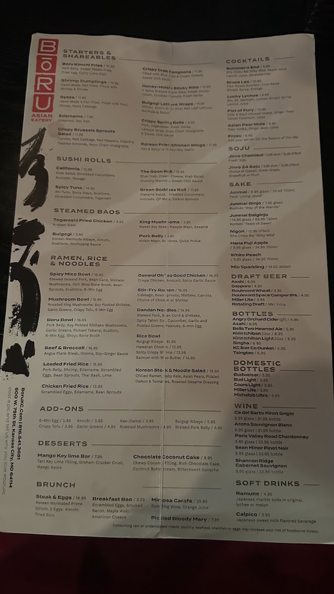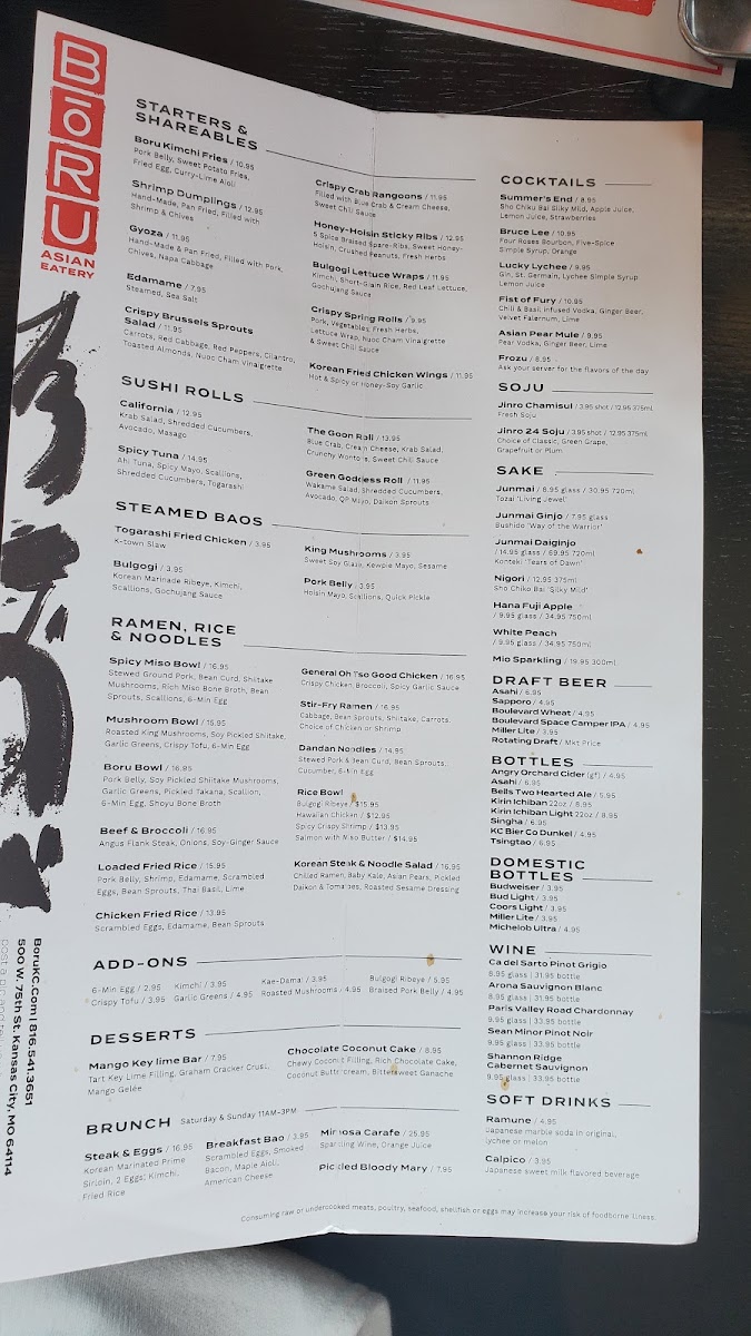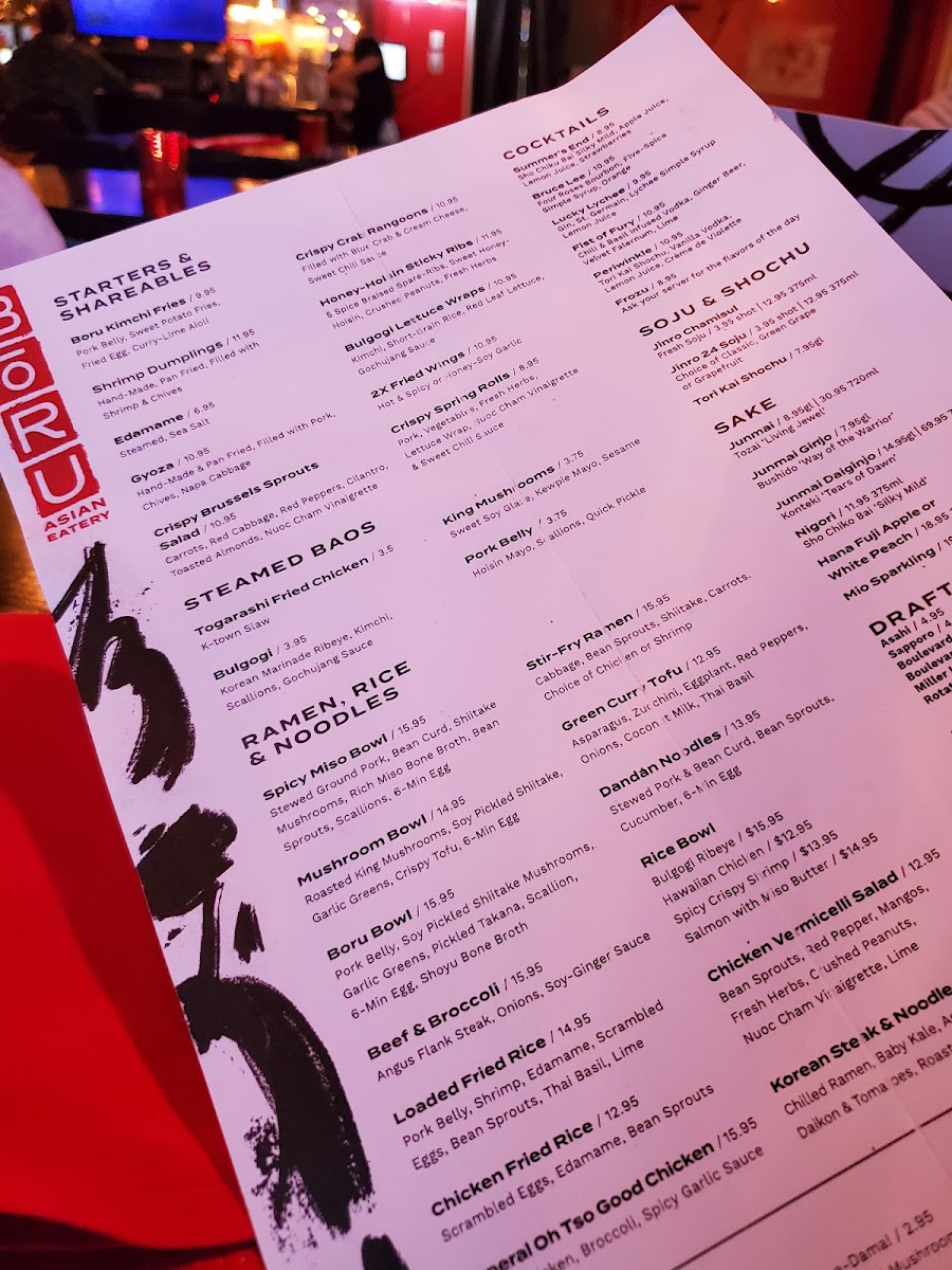 If you’re craving a vibrant, flavor-packed meal, look no further than the Bōru Asian Eatery Menu. Nestled at 500 W 75th St, Kansas City, MO, this spot offers a variety of dishes that beautifully blend traditional Asian flavors with a modern twist. Whether you're in the mood for savory ramen, fresh sushi, or a satisfying rice bowl, each dish is crafted with fresh ingredients and bold seasonings that promise to leave you coming back for more. The menu features a diverse range of options, ensuring there's something for everyone, from those seeking comfort food to adventurous eaters ready to explore new flavors. With every bite, you’ll experience the perfect balance of texture and taste, making it an ideal destination for a memorable meal.